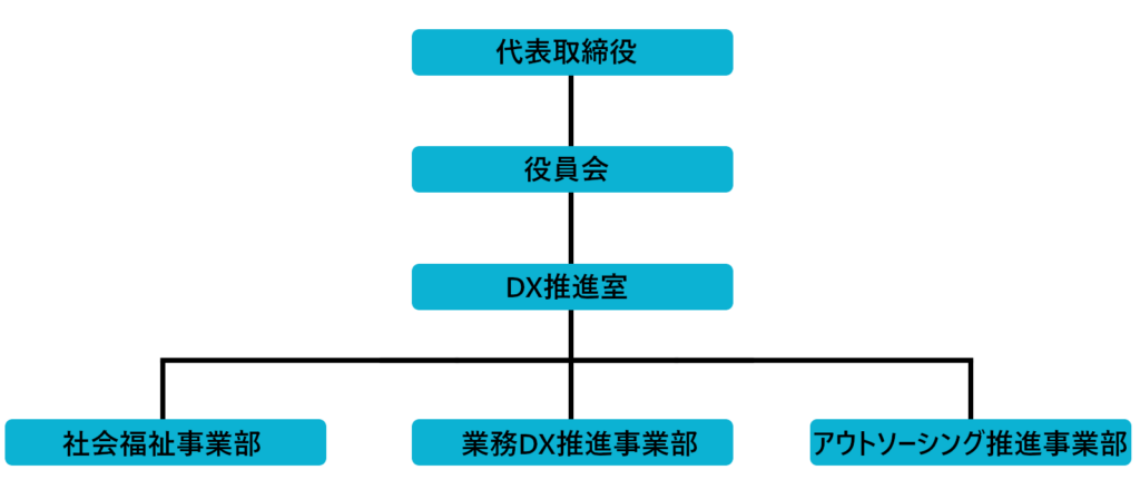 1.DX推進室の設置全社横断のDX推進室を設置し、部門を越えた連携でDXを推進します。